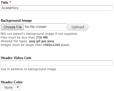 There is an option called "Header Video Link" that enables you to add a video to the header section. If you would like to add a video to your page please contact the Web Center for assistance as only specific videos will be suitable for this feature.